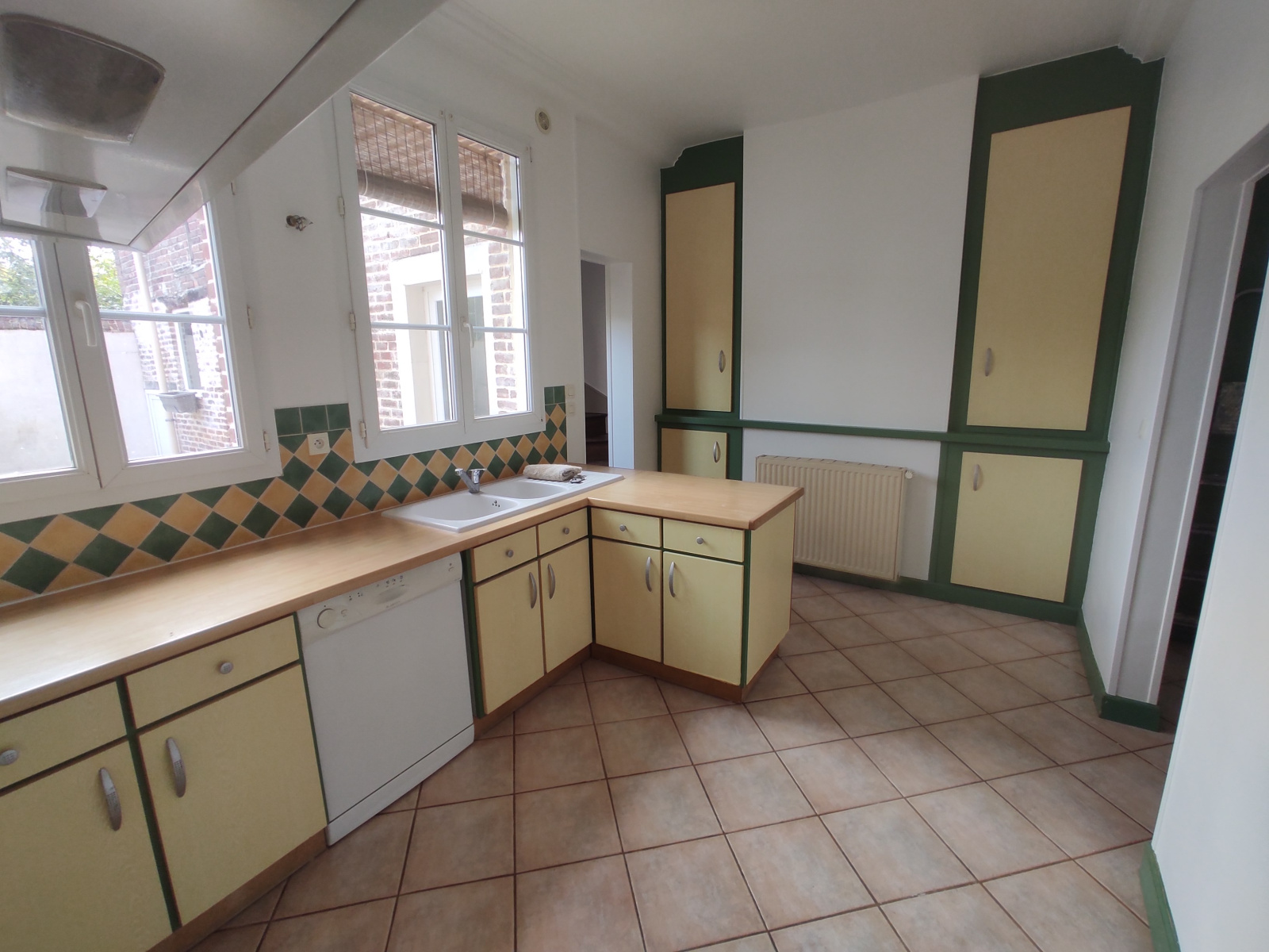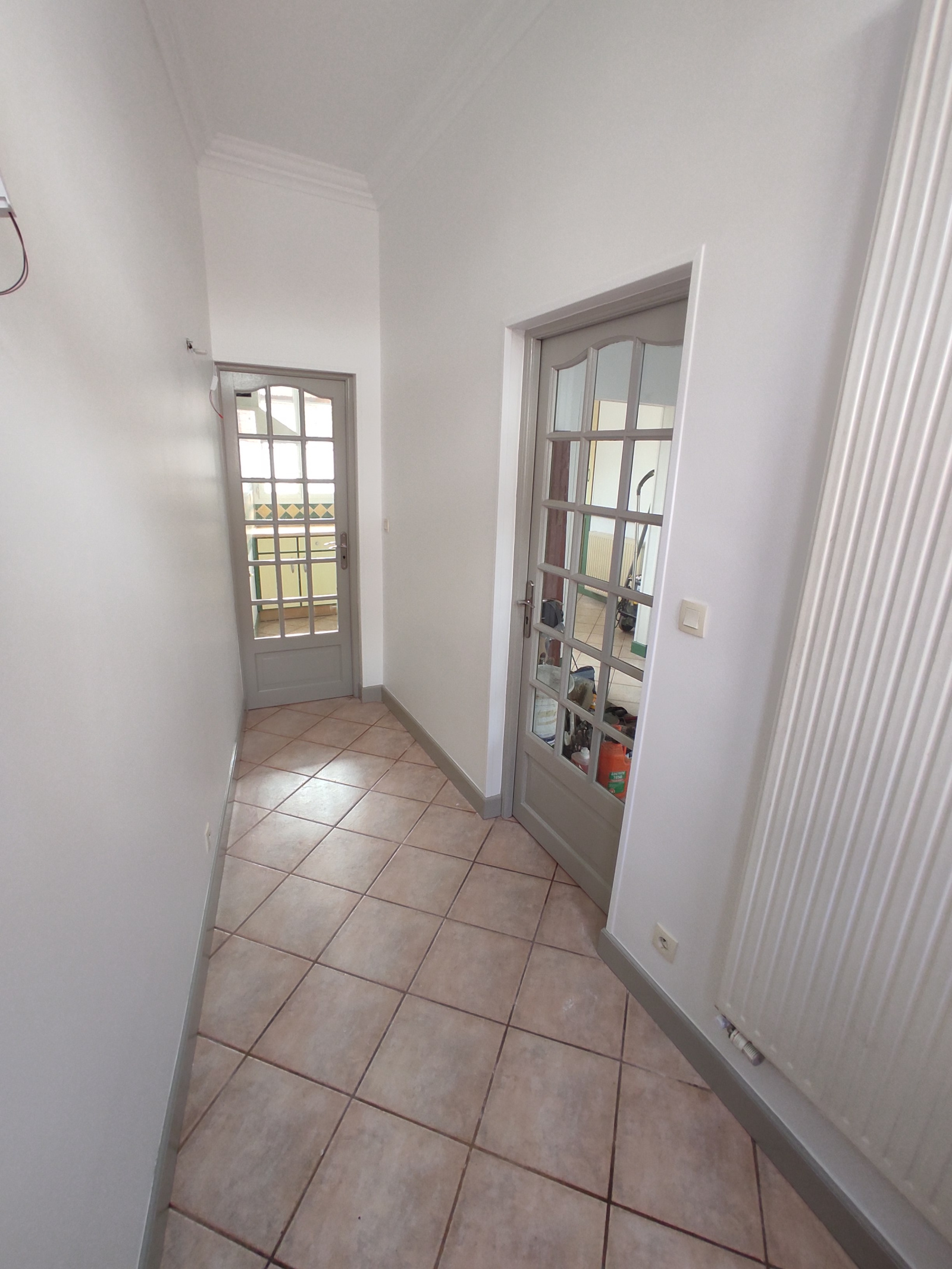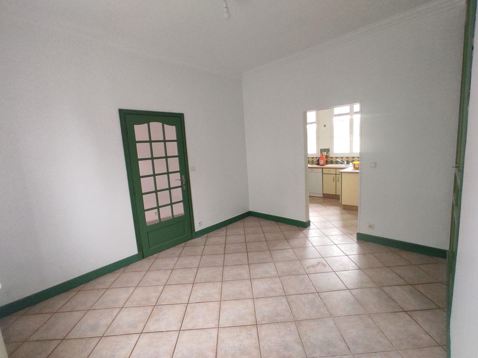 Entrée, salon, cuisine aménagée,