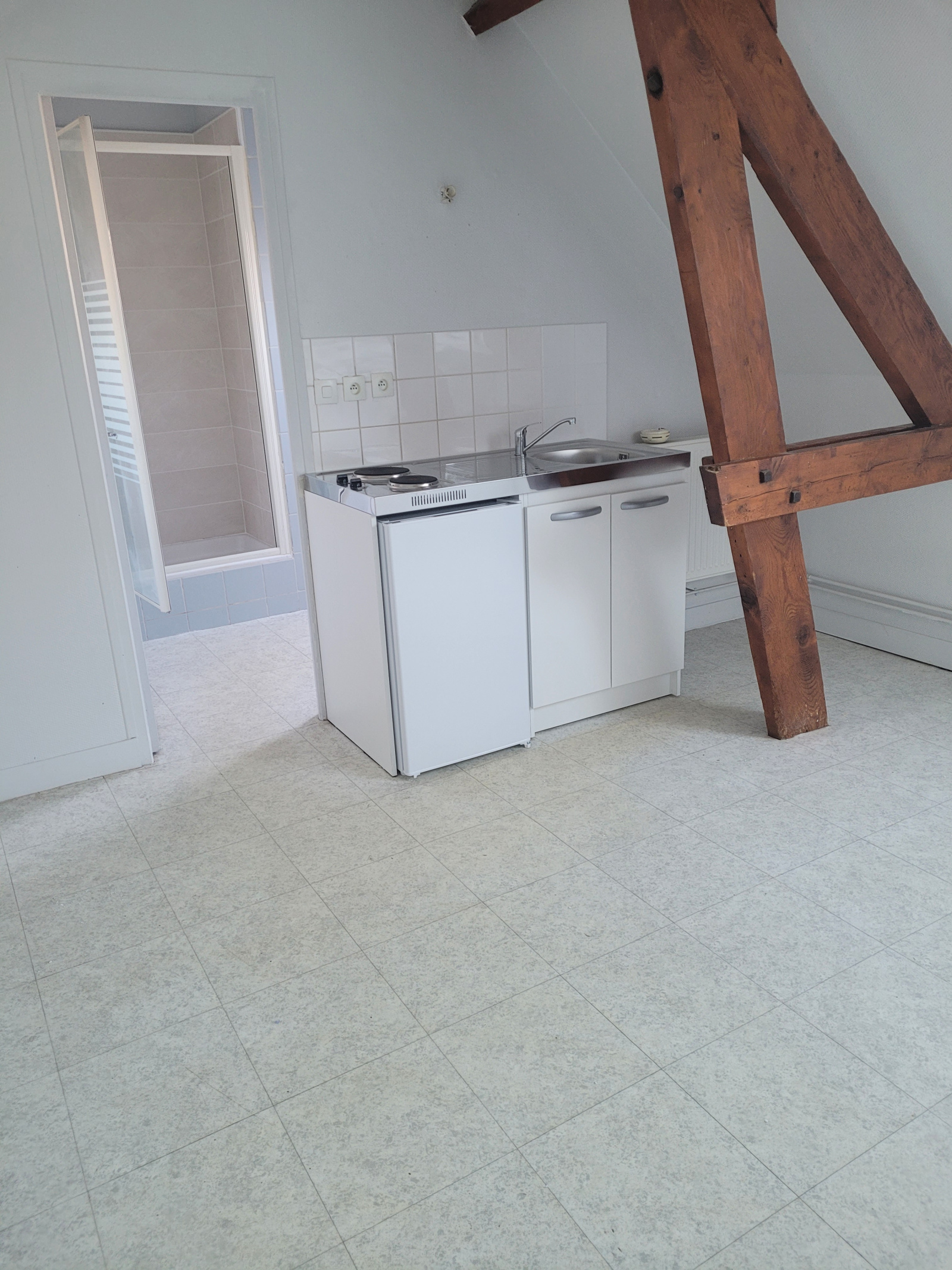 Dans une résidence sécurisée avec ascenseur en centre ville de Neufchatel en Bray.studio de 16m2 au 3éme étage. salle/séjour avec coin kitchenette, salle d'eau avec douche, WC